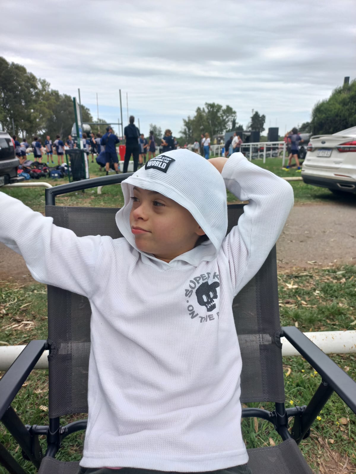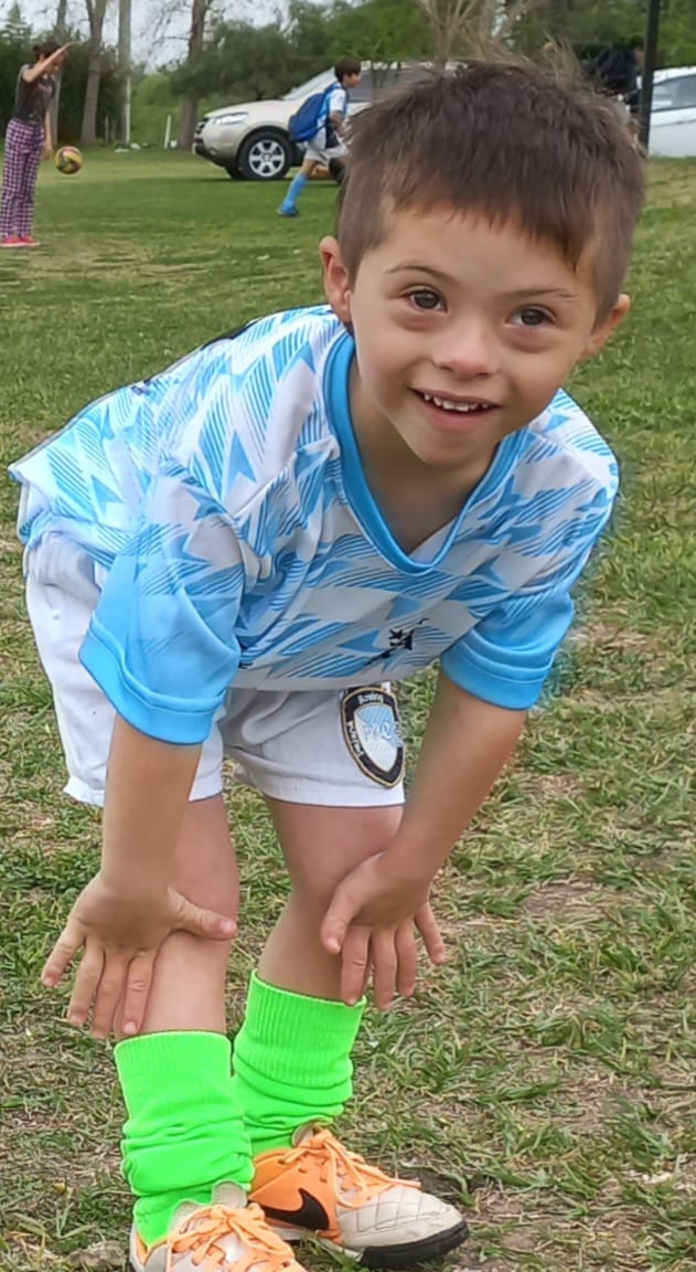 Estar al aire libre en un campo de deportes y sentirse acompañado que lindo momento para Amadeo.