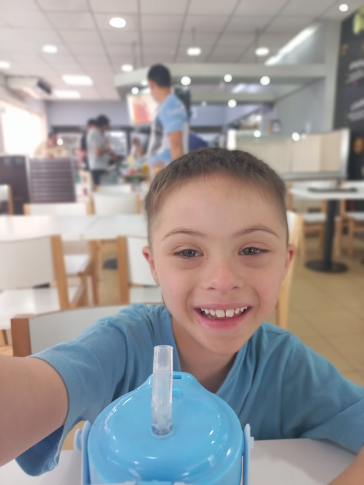 Amadeo en un lugar de esparcimiento con su agua para beber esta, Feliz: